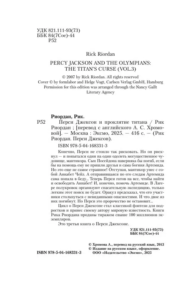 Это третья книга о Перси Джексоне.